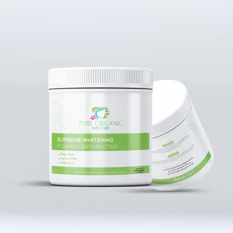 Indulge your skin with our Supreme Whitening Foaming Bath Butter, a rich and creamy cleanser designed to deeply nourish while helping to brighten your complexion. Infused with powerful natural ingredients like Kojic Acid, Lemon Peel Extract, and Vitamin C, this bath butter gently lifts away impurities while promoting a more even-toned, luminous skin appearance.